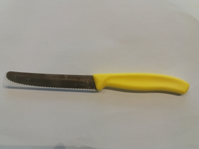 Este un cutit zimtat de 11 cm culoare galbena.