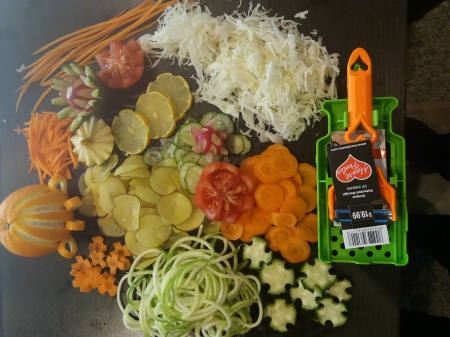 Face julien,are un acesoriu care se monteaza pe razatoare si se poate face spaghete din dovleac,morcovi,cartofi,ceapa.